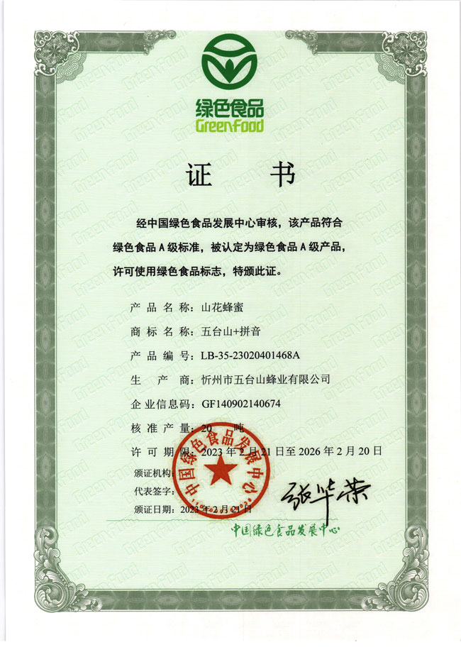 五臺(tái)山蜂業(yè)喜獲兩項(xiàng)綠色食品認(rèn)證